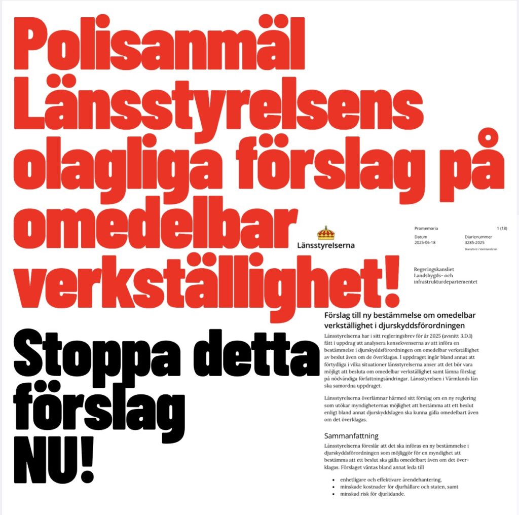 Länsstyrelsens djurhandläggare har satt i system att stjäla djur på helt olagliga grunder! Kriminella aktivister på Länsstyrelsen försöker nu driva igenom omedelbar verkställighet på sina lögnbaserade beslut.