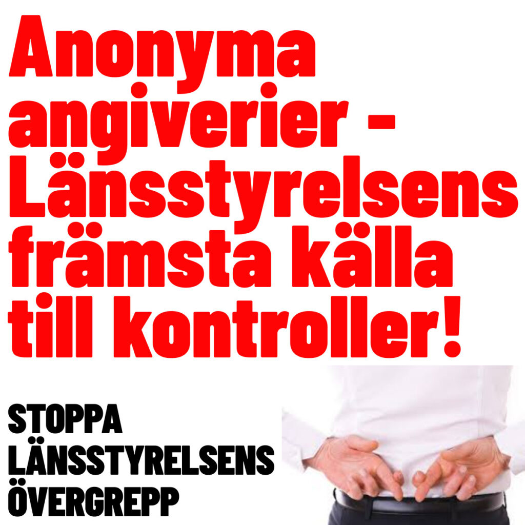 Jordbruksverket och länsstyrelserna uppmanar ju som bekant till anonyma angiverier. Allmänheten har upptäckt att detta är ett mycket effektivt sätt att sätta dit sin granne, arbetsgivare, konkurrent eller överhuvudtaget någon som man kommit ihop sig med.