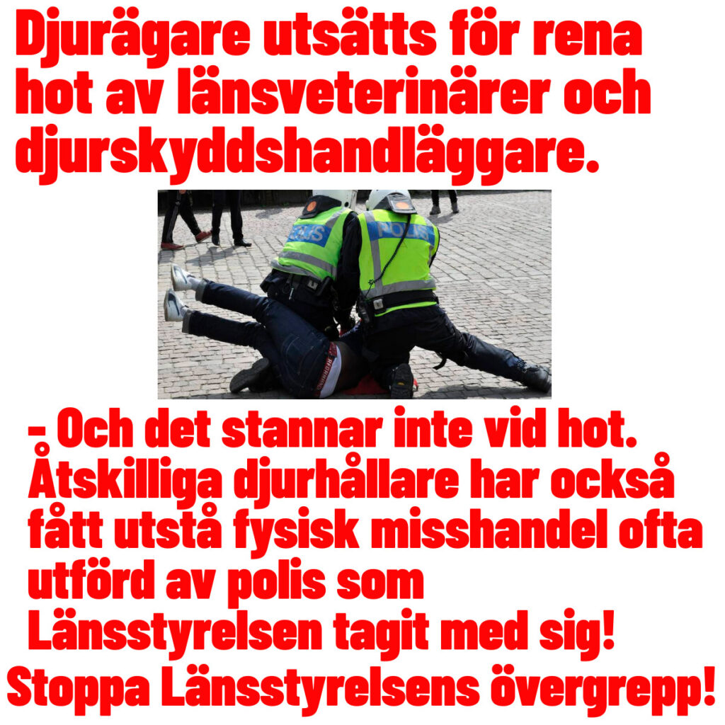 – Och det stannar inte vid hot. Åtskilliga djurhållare har också fått utstå fysisk misshandel ofta utförd av polis som Länsstyrelsen tagit med sig!