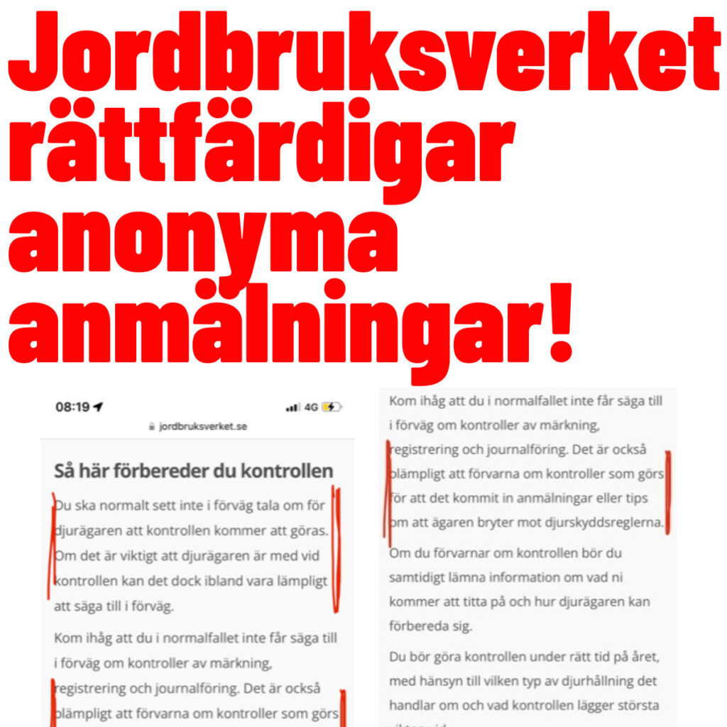 Genom sitt berättigande av att inkomna tips och anmälningar betraktas som så värdefulla att de ska följas av oanmälda kontroller bekräftar Jordbruksverket bilden av djurägaren som ett objekt som försöker dölja djurskyddsbrott.