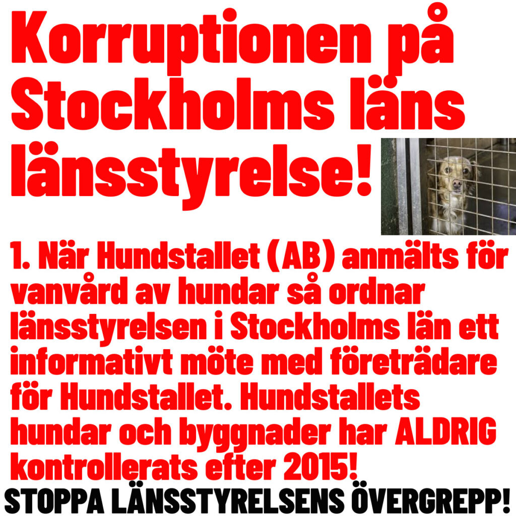Vi har tidigare redovisat korruptionen och jävssituationen mellan djurskyddsenheten på Stockholms läns länsstyrelse och Hundstallet (AB) som de har uppstallningsavtal med. Exempel på utövandet är att: