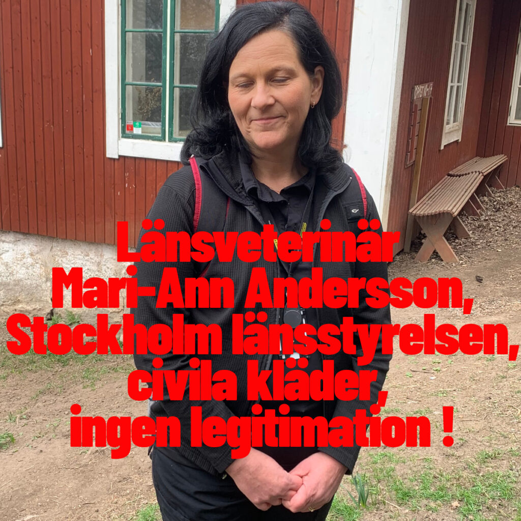 Länsveterinär Mari-Ann Andersson, länsstyrelsen Stockholm, civila kläder, ingen legitimation vilket bryter mot lagen!