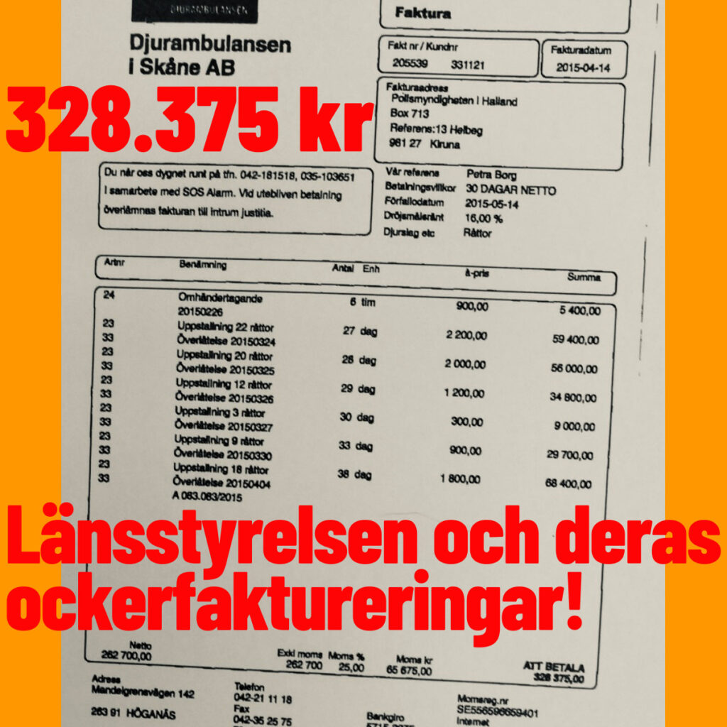 Länsstyrelsernas djurskyddsenheter tar ut fakturor på något de kallar extra djurskyddskontroller. Det är medvetet påhittade avvikelser som de kontrollerar. De tar få 915 kr/timme och person inklusive transporttid inklusive den tid de sitter på tjänsterummen och fantiserar ihop förelägganden.
