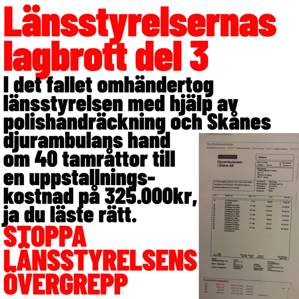 I det fallet omhändertog länsstyrelsen med hjälp av polishandräckning och Skånes djurambulans hand om 40 tamråttor till en uppstallningskostnad på 325.000 kr, ja du läste rätt.