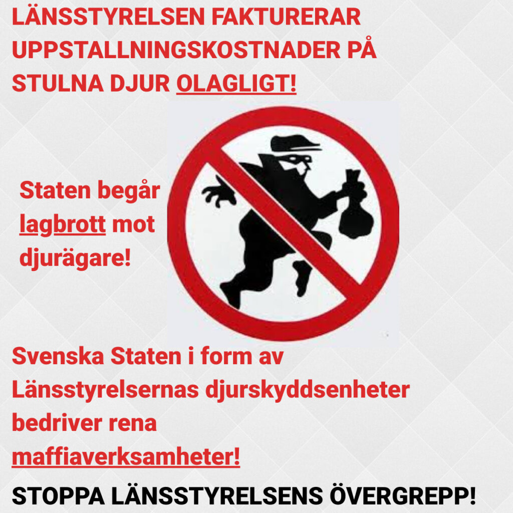 LÄNSSTYRELSEN FAKTURERAR UPPSTALLNINGSKOSTNADER PÅ STULNA DJUR OLAGLIGT!