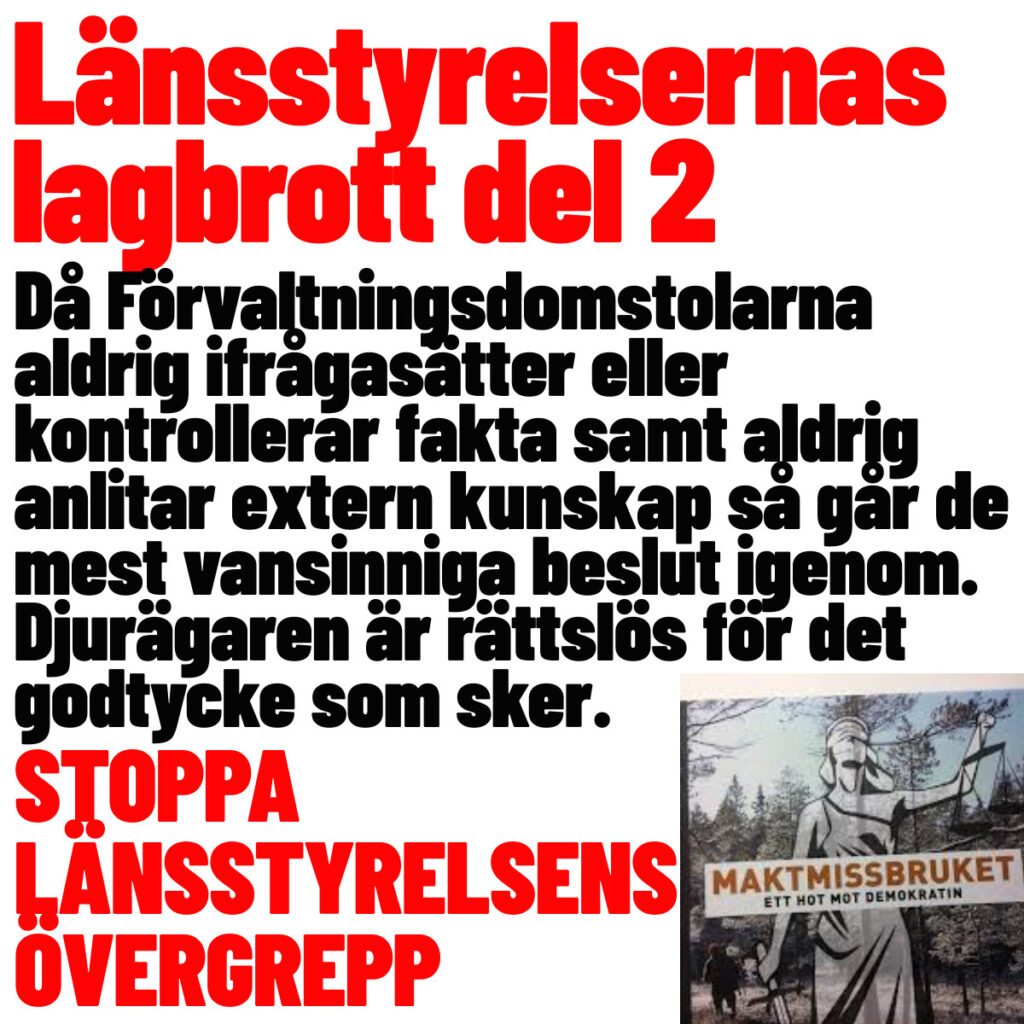 Länsstyrelsens djurskyddsenheter bryter mot många lagar. Vi har redogjort tidigare för vissa. Ett vanligt lagbrott är också Förvaltningslagen (2017:900) 5 §. Den handlar om legalitet, objektivitet och proportionalitet. En myndighet får endast vidta åtgärder som har stöd i rättsordningen. I sin verksamhet ska myndigheten vara saklig och opartisk. Vi har i hundratals länsstyrelsebeslut konstaterat hur besluten sker utan objektiva mätresultat och med känsloladdade subjektiva uttryck. Besluten är oftast oproportionerliga. En djurägare kan till exempel få sitt liv förstört och bli ruinerad på grund av ren godtycke från en enskild djurskyddshandläggare på länsstyrelsen. Dessa handläggare är ofta misslyckade individer på arbetsmarknaden som kompenserar sina djupa brister genom att attackera och trakassera djurägare. En länsveterinär har lagt till ordet ”carnifex” i sitt förnamn. Det betyder avrättare! Han njuter nog av att ”avrätta” djurägare.