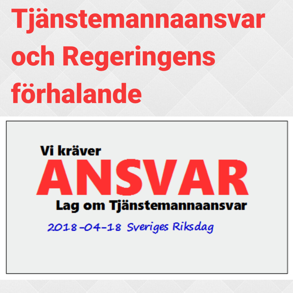 I snart 4 år har den socialistiska totalitärt styrande regeringen förhalat Riksdagens demokratiskt fattade  beslut om genomförande av ett fungerande tjänstemannaansvar.